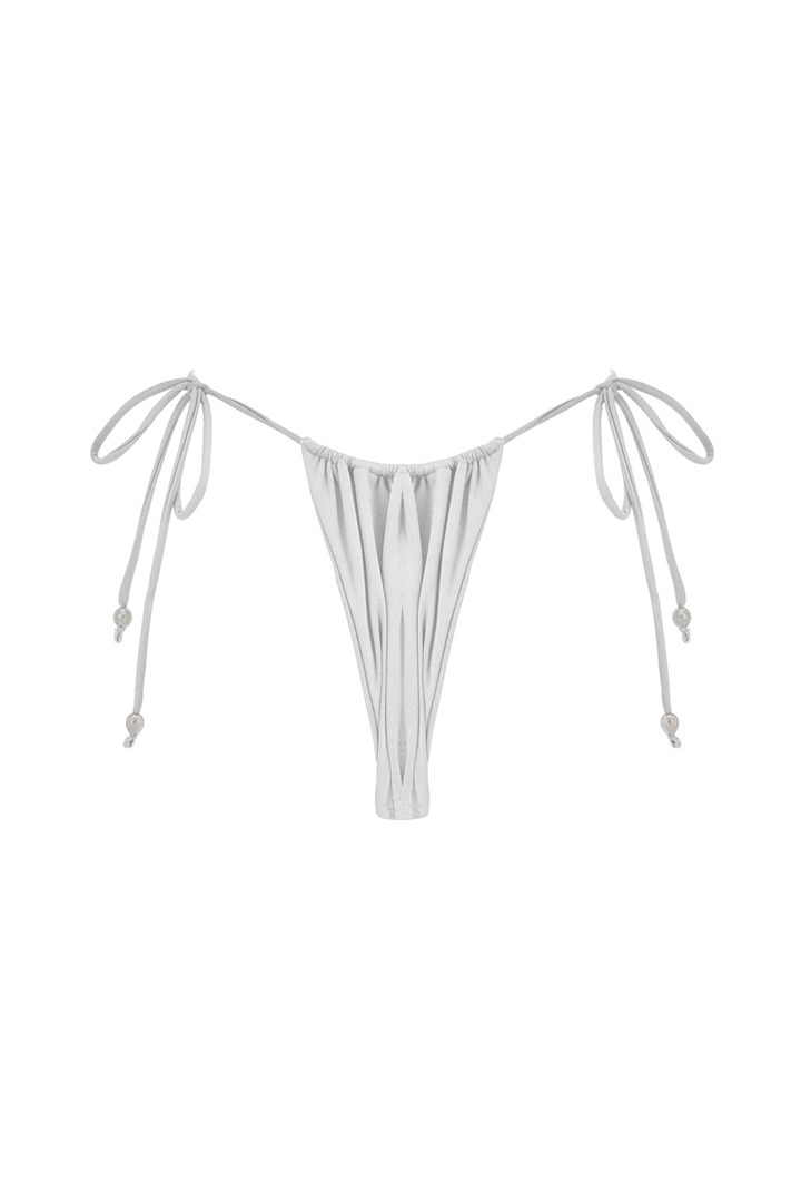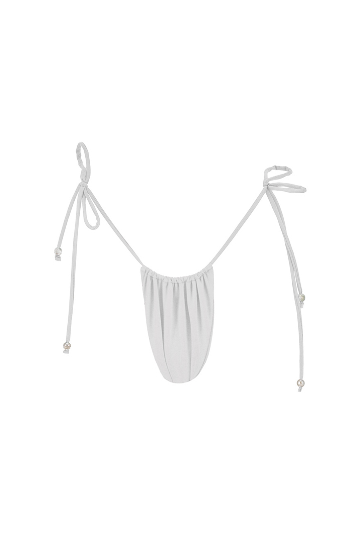 The Maimiti bottom in Crystal is embellished with Tahitian pearls on the ties, lending it a chic and exotic allure. Fully adjustable, it ensures a personalized fit that flatters the silhouette with sensuality. Its bright, luminous shade beautifully complements sun-kissed skin. For a bolder look, opt for a smaller size.
