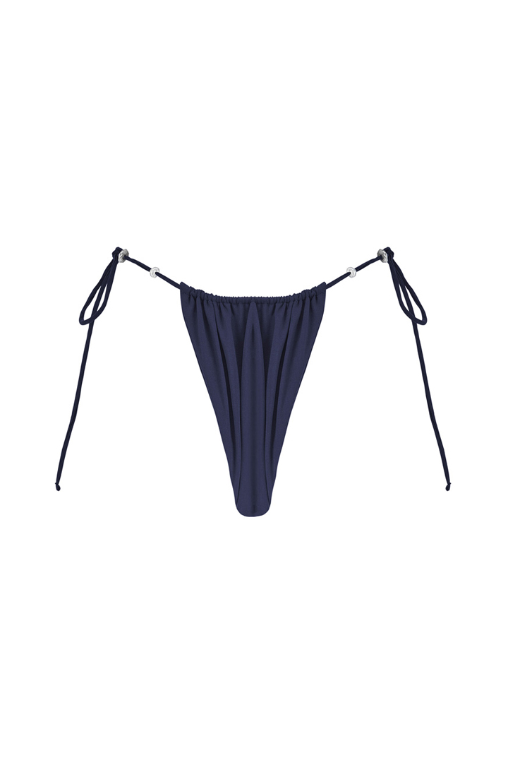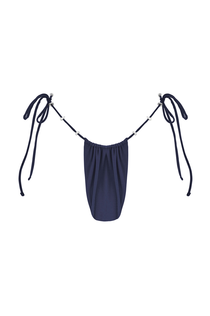 The Vaihau bottom in Navy, highlighted by ten Keshis, is characterized by its adjustable high-cut design. The ties allow you to customize the coverage to suit your style. Its deep Navy tone adds a sophisticated touch, perfect for a harmonious and alluring silhouette. For a more sculpted effect, size down.