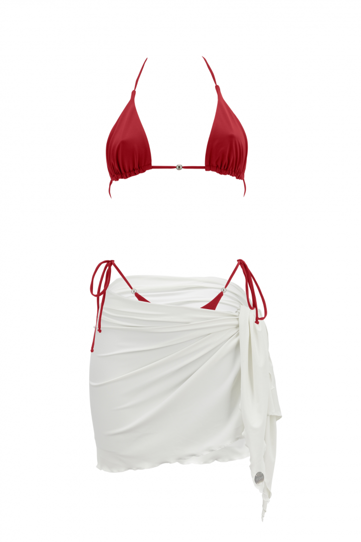 An iconic and exclusive piece from the collection, the TEPUA set celebrates the power of red and the rarity of pearls. Its vibrant cherry hue evokes passion, the warmth of the sun, and bold confidence. It enhances the skin and catches the light—for an unforgettable summer.