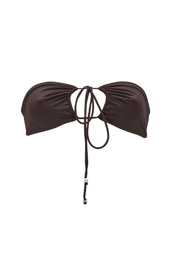 This bandeau top in Espresso color captures the richness of deep coffee hues. Adorned with three Keshis, it stands out for its elegance and refinement. Tieable around the neck, it ensures comfort and perfect support while enhancing the neckline. Its warm and captivating color is ideal for those looking to add a touch of mystery to their beach style.