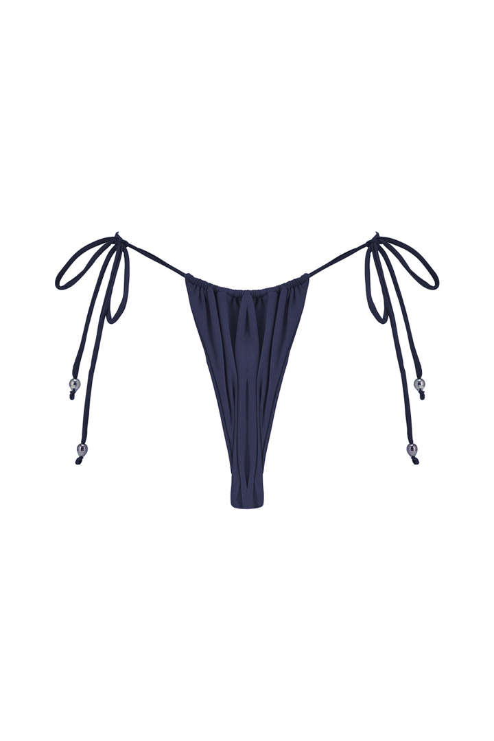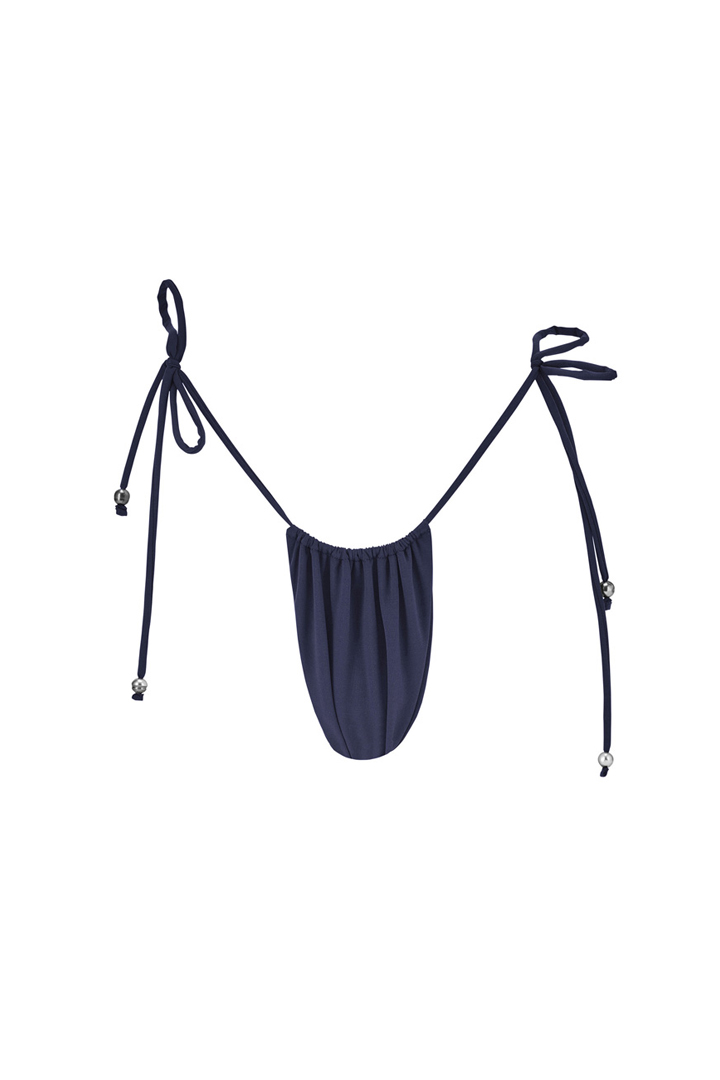 Le bas Maimiti Navy, tout aussi raffiné, est orné de perles de Tahiti aux extrémités des cordons, ajoutant une note précieuse et délicate. Entièrement ajustable, il peut être modulé pour un confort optimal et une échancrure à la carte. Sa couleur marine profonde en fait une pièce intemporelle, idéale pour toutes les occasions sous le soleil. Pour une allure plus audacieuse, choisissez une taille en dessous.