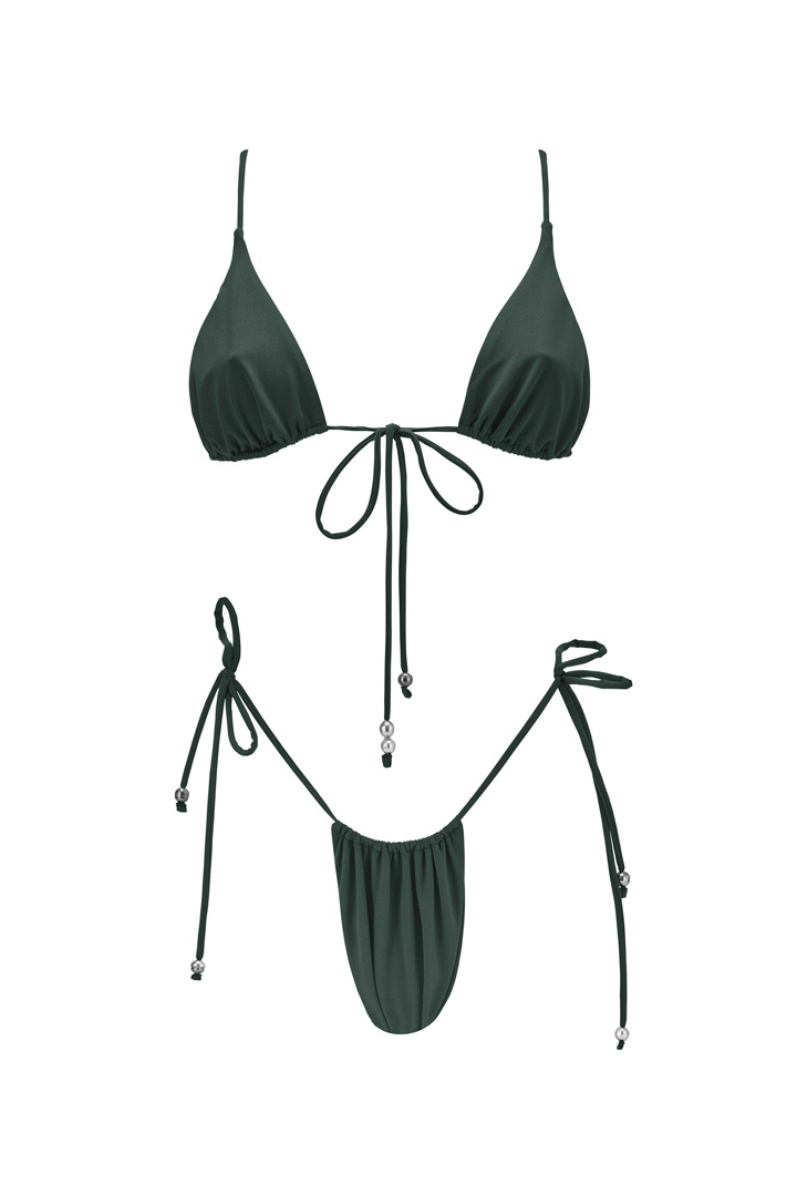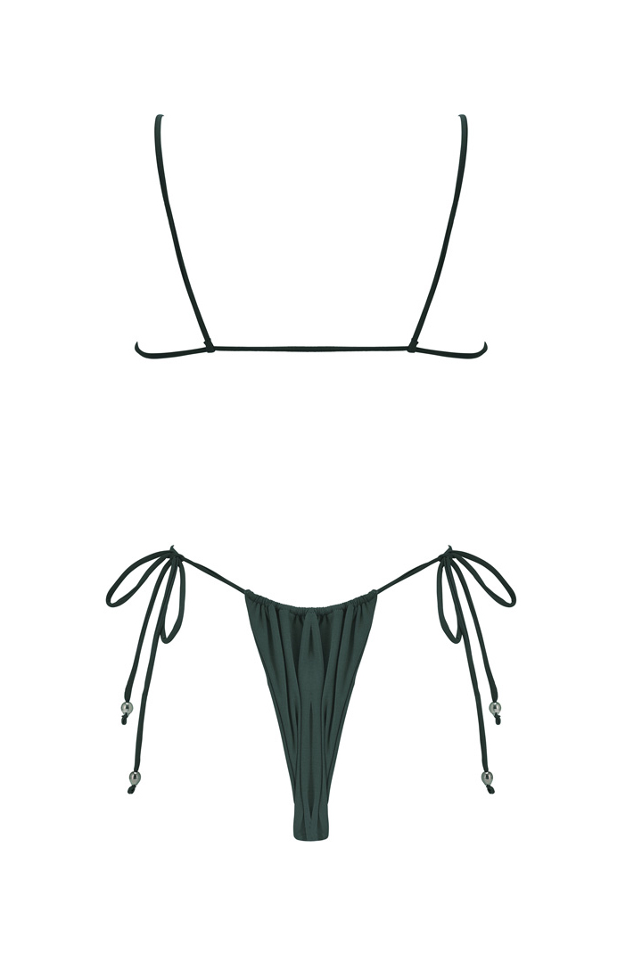 L’ensemble MAIMITI en coloris Palm, inspiré par la verdure luxuriante de la flore polynésienne, incarne l’élégance et la sensualité. Le haut, nouable à l’avant, est sublimé par trois perles de Tahiti. Le bas, tout aussi raffiné, est orné de perles de Tahiti à chaque extrémité des cordons. Grâce à ses cordons entièrement réglables, cet ensemble s’adapte à toutes les morphologies, offrant un ajustement sur-mesure et une échancrure modulable. Pour une allure plus audacieuse, optez pour une taille en dessous.