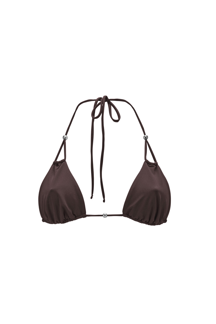 Le haut triangle goutte de l’ensemble Poehere Espresso, orné de trois perles de Tahiti, incarne le charme et la profondeur des nuances de café. Sa forme originale apporte une touche sensuelle et unique, tandis que les cordons réglables permettent un ajustement parfait pour toutes les morphologies. Ce haut est parfait pour celles qui recherchent un look audacieux et raffiné, avec une note de luxe exotique.