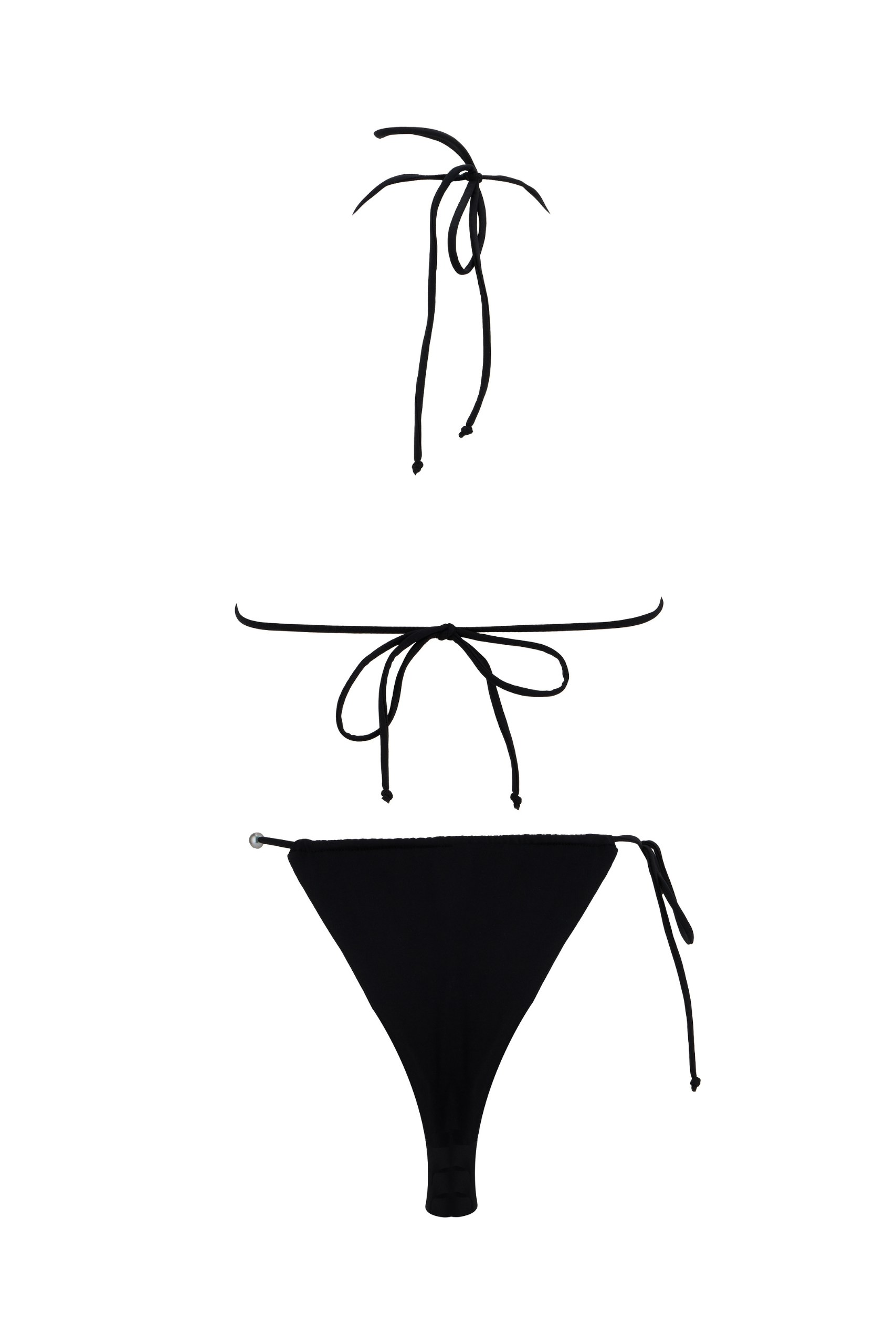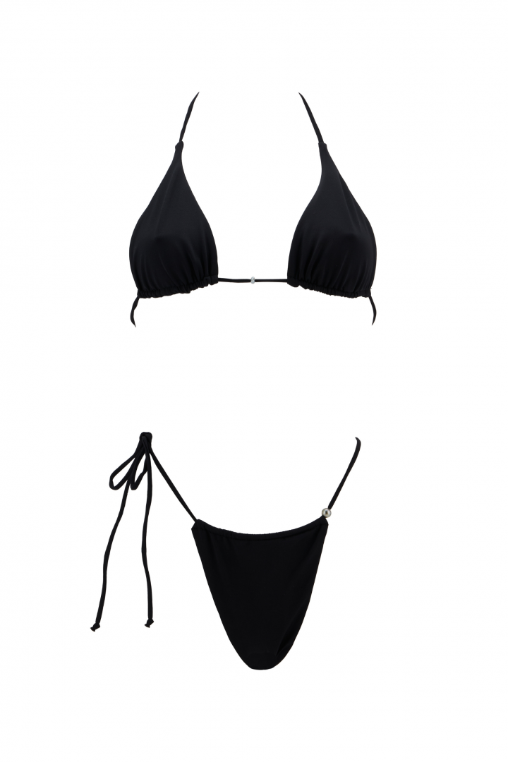 Symbole de sobriété et de sophistication, l’ensemble RAVA s’impose comme une valeur sûre. Inspiré par la profondeur mystérieuse des plages de sable noir polynésien, ce modèle revisite le bikini noir classique avec l’essence même de SEANAY : une touche précieuse venue des lagons.