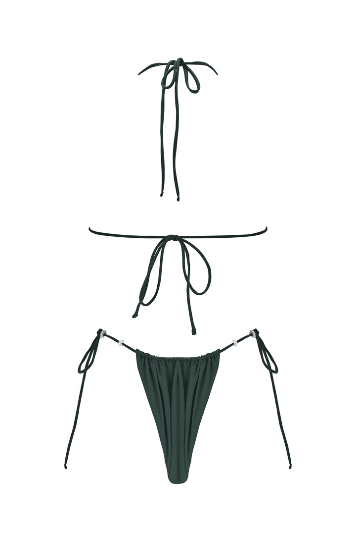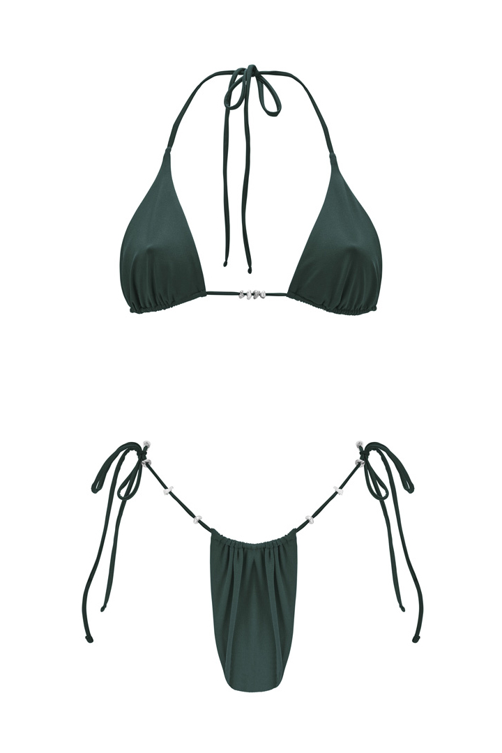 Pièce maîtresse de la collection SEANAY. L’ensemble VAIHAU en coloris Palm, inspiré par la verdure luxuriante de la flore polynésienne, incarne l’élégance et la sensualité. Son haut triangle ajustable est sublimé par quatre Keshis, tandis que le bas, orné de dix Keshis, permet une personnalisation parfaite. Les keshis peuvent être disposées selon vos envies, pour un maillot unique et raffiné. Grâce à ses cordons entièrement réglables, cet ensemble s’adapte à toutes les morphologies, offrant un ajustement sur-mesure et une échancrure modulable. Pour une allure plus audacieuse, optez pour une taille en dessous.